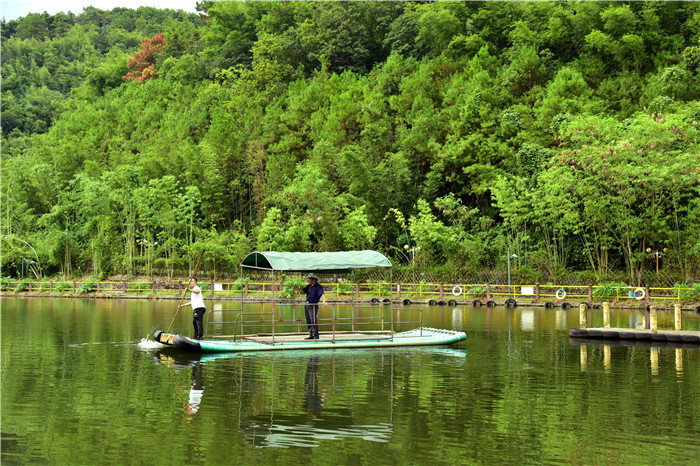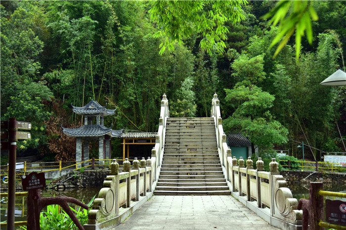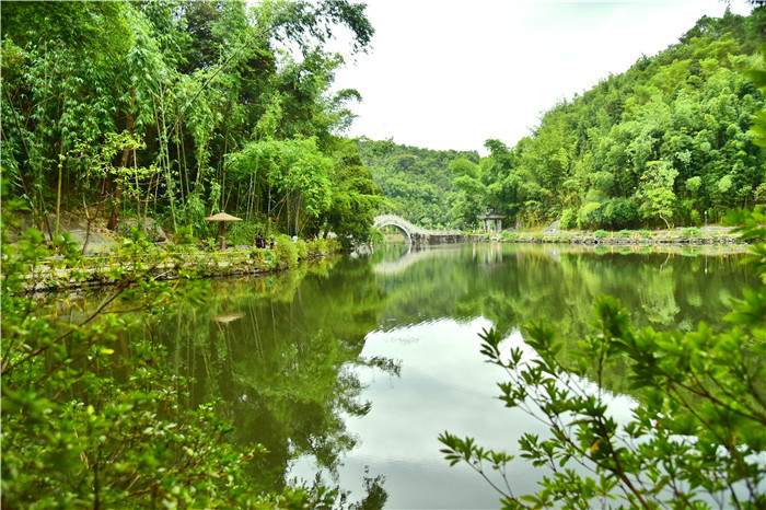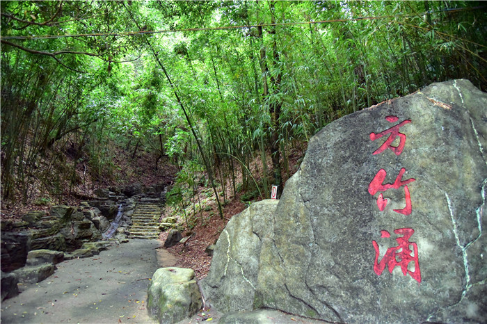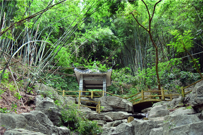 景区湖泊四周,山上均自然生长着竹子,也有人工培植的竹子,竹子挺拔高耸,竹叶绿得像翡翠,和煦的阳光透过竹林的叶片枝杆洒下了斑驳的光芒。走入竹园,秀逸神韵,纤细柔美,郁郁苍苍,重重叠叠,挺拔秀丽,潇洒多姿,千奇百态的青青翠竹随处可见。