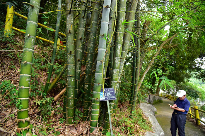 景区工作人员介绍说,景区竹子生态园占地面积300亩,种有来自世界各地的100多种竹子,有全世界最大的巨龙竹,有全世界最小的菲白竹,有珍贵罕见的红宝石竹,更妙的是酸竹、甜竹、苦竹、辣竹,代表人生的酸甜苦辣,而“金、银、珠、宝”竹则寓意着竹报平安、富贵长寿。