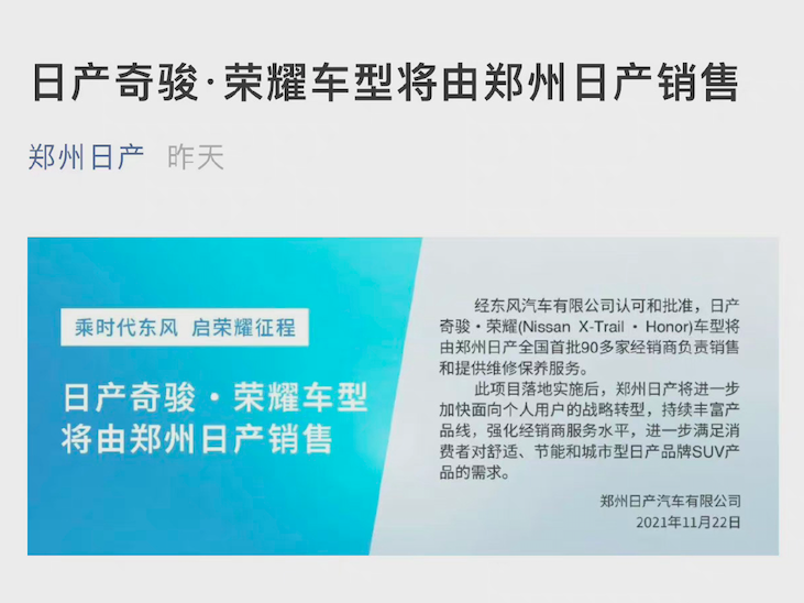 全新的老款奇骏和停产的老款奇骏有什么区别吗?没有,只有车尾多了一个“HONOR”徽标而已,连配置都不带增配的。