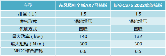 再来对比目前中国品牌中搭载1.5T蓝鲸动力的长安CS75,全新AX7马赫版在动力上也要强一些。尽管两者的油耗水平仅相差0.1L/100km,但在日常生活中可以忽略不计。所以,无论是头部中国品牌,还是合资品牌中代表性的翘楚,这台马赫动力1.5T发动机也丝毫不示弱。