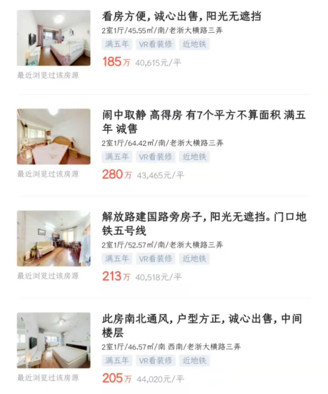 另外,一般没加装电梯的老小区,底楼会因为无需上下楼的便捷,价格上反而比高楼层更贵。贝壳找房上,老浙大横路3弄共挂牌4套,其中,2套高层房源挂牌价在4万/㎡出头,剩下2套中、低楼层则要4.3-4.4万/㎡。电梯一旦加装完毕,底层便捷优势会被抹平,采光、通风劣势或被放大。