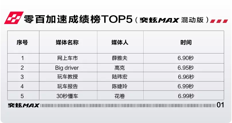 特别值得一提的是,奕炫MAX马赫双擎实测的极致加速表现,还不是特定条件下的“不可复制性”成绩。就在李明亮跑出6.81秒的当天,还有十余家专业测评媒体人亲身测试了不俗的零百加速成绩。