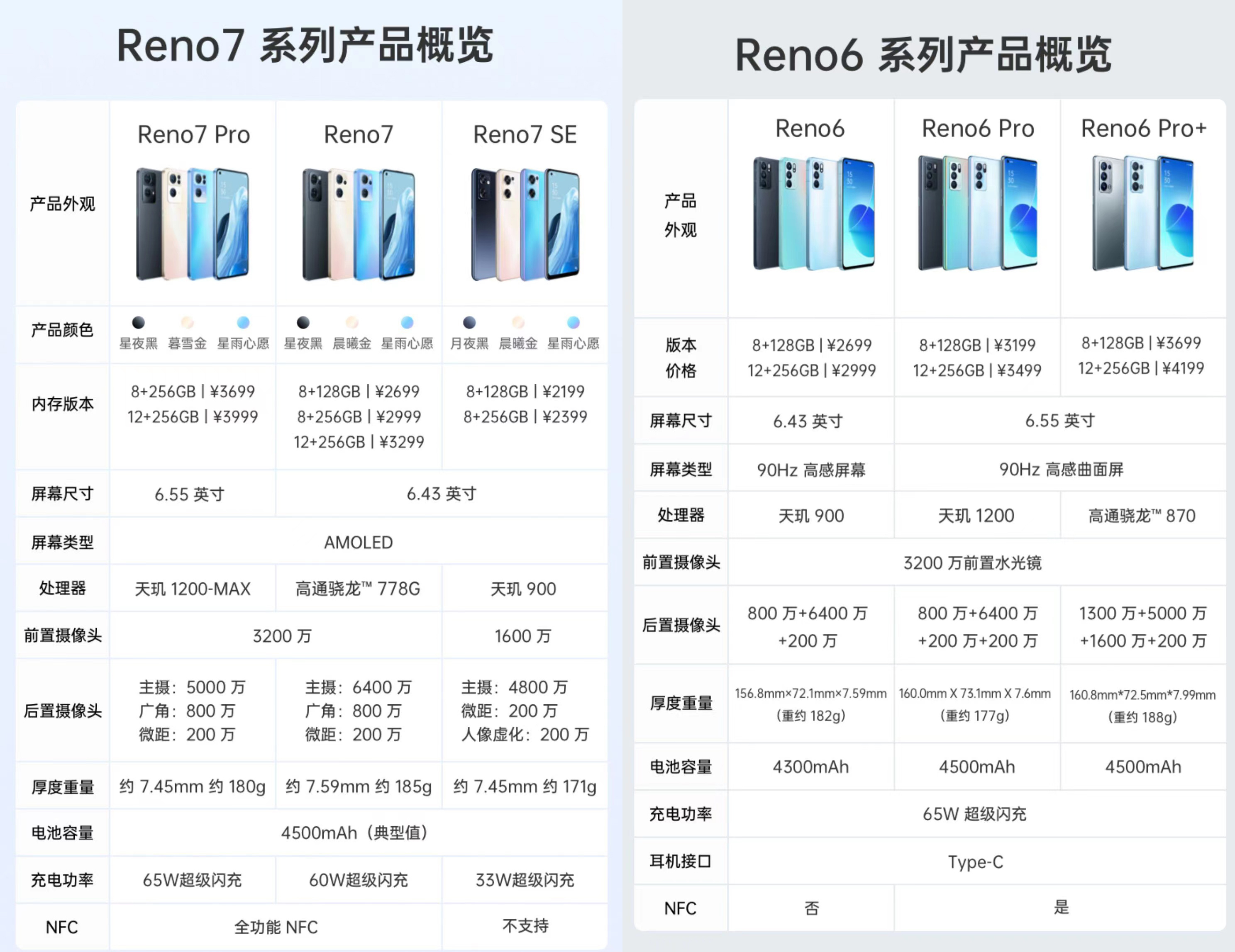(左:OPPO Reno7系列;右 OPPO Reno6系列)