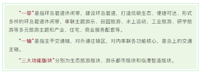中远期全面建成国际生态低碳休闲岛,打造国际知名的生态宜居示范岛。