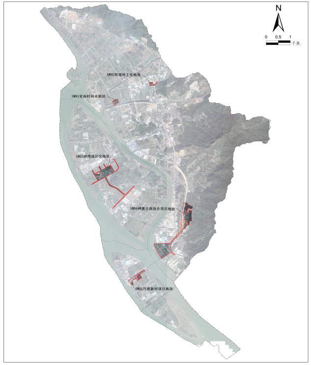 其中宥南村商业地块 3.8410 公顷,宥南村工业地块 2.6250 公顷,神湾港片区地块为 32.6973 公顷,神溪文旅综合项目地块为 63.9385 公顷,竹排新村项目地块为 10.3136 公顷。