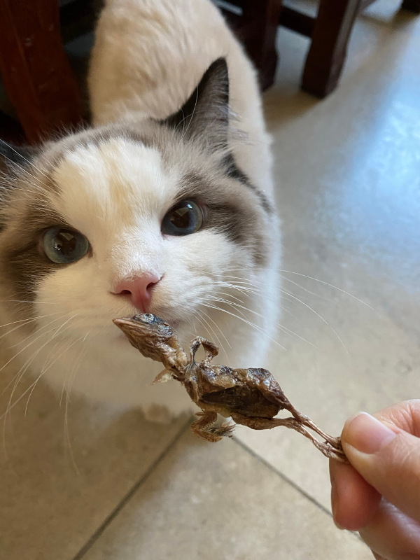 小编家的猫咪从小就开始喂养冻干鹌鹑,因为冻干鹌鹑有助于喵主子们发腮,给大家放出图,参考一下!