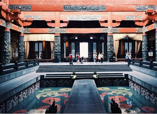 其实横店的秦王宫已经有24年的历史了,这是当年专为拍摄陈凯歌导演筹备多年的历史大片《荆轲刺秦王》而建的主题区域,也是横店继广州街之后第二个建造起来的景区。