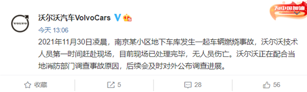 就网曝南京某小区地下车库一辆沃尔沃在充电过程中发生爆炸一事,今天下午,沃尔沃官方作出了回应。