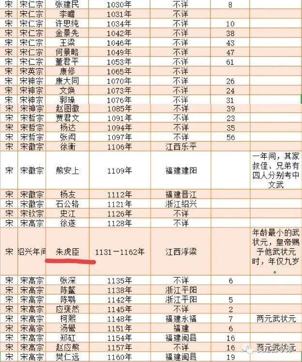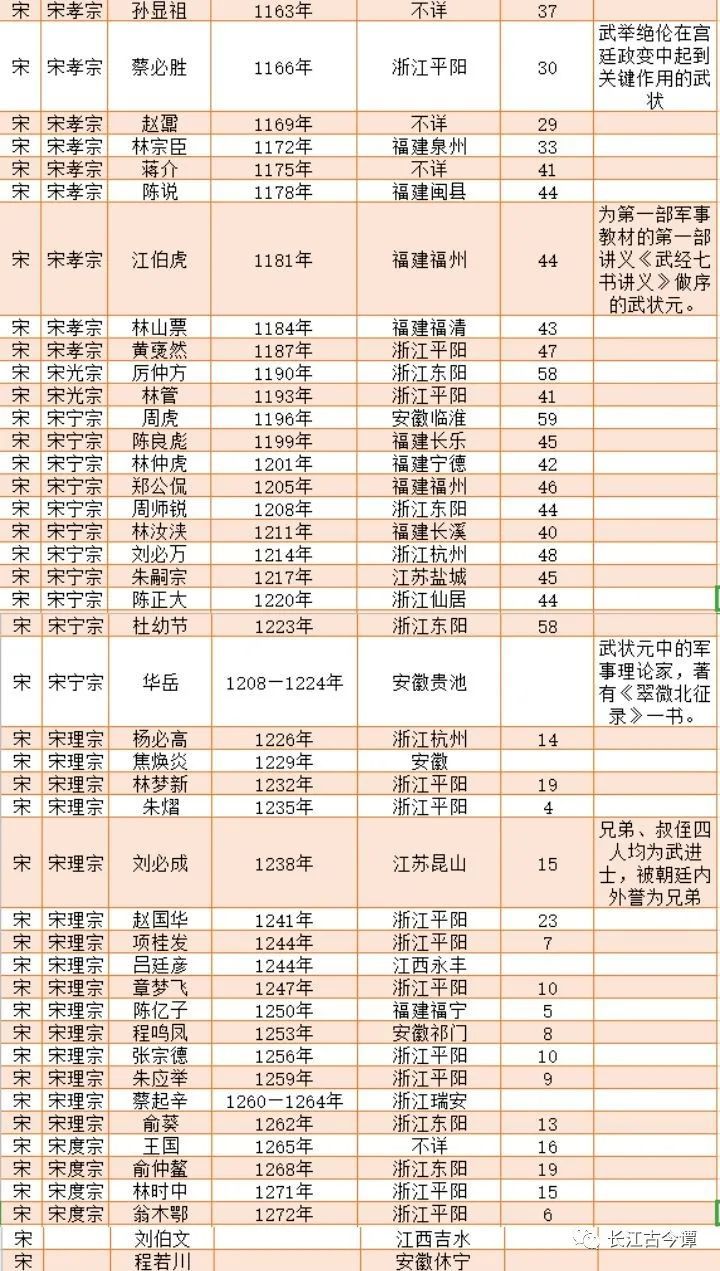 宋朝才有了“武状元”之设,第一个武状元是宋神宗熙宁九年(1076年)的“武魁”薛奕(图表中是郭璪)。