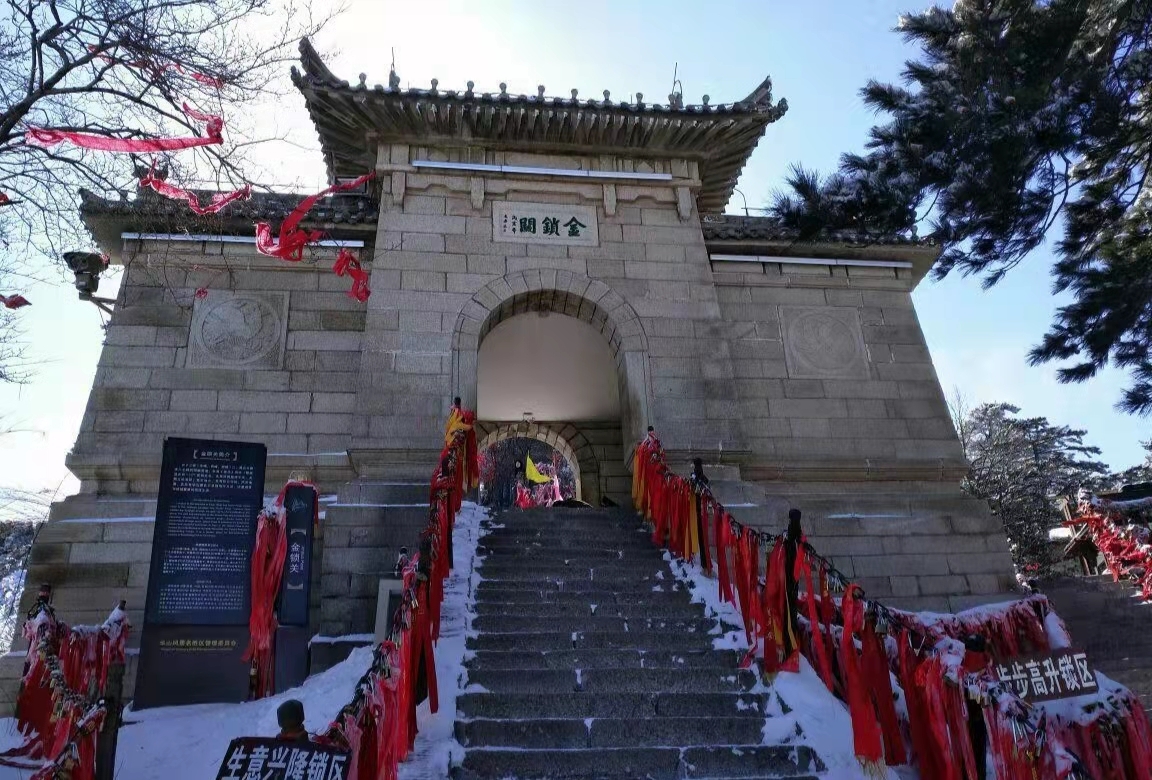 注:金锁关是建在三峰口的一座城楼般石拱门,是经五云峰通往东西南峰的咽喉要道,道家认为华岳为仙乡神府只有过了通天门才算进入仙境。