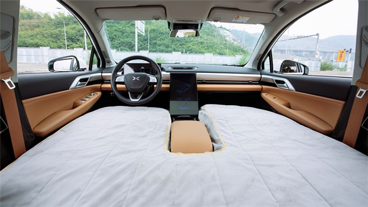 介绍下P5的影院模式变化流程,大概是远程语音呼唤小P开启智能睡眠空间。小鹏P5汽车会马上将前排座椅缓缓放倒,直到与后排齐平。同时自动遮光帘也缓缓拉起,减少车内光线。如果想要更舒适,则可以把配送的充气床垫和定制床品放到座椅上。一切就绪后,车主一家三口躺下去都绰绰有余。