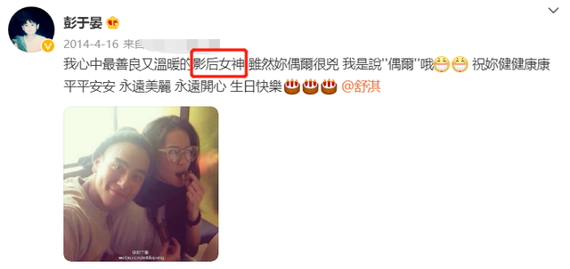 在私下里,两人也一直都是很好的朋友。彭于晏一直把舒淇称为自己的“女神”,在2014年和2015年都为她送上了亲切的生日祝福。两人在当时也常常有绯闻传出。
