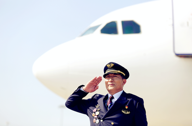 一小时后,飞机平稳降落在上海虹桥机场,这位飞行了42年的五星机长戴着耀眼的党徽走下飞机,饱含深情地转身向自己深爱的飞机敬了一个庄严的军礼。