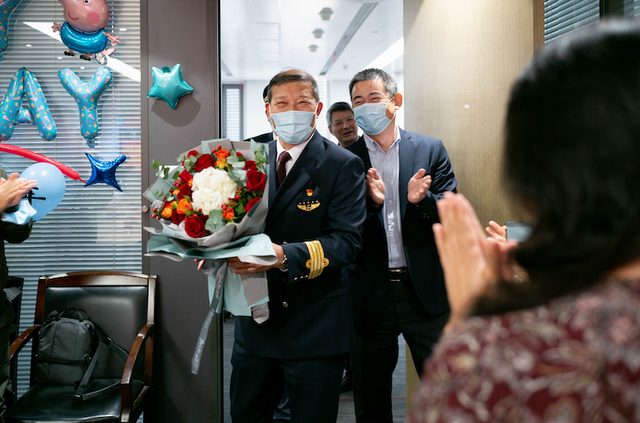 而当这位用一生呵护飞行安全的老机长手捧鲜花,来到飞行六部二分部队部时,却看到了令人感动的一幕——所有没有执行航班的飞行员都自发来到了队部,看着这位老机长,所有人都鼓起了掌。
