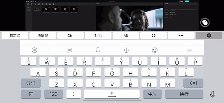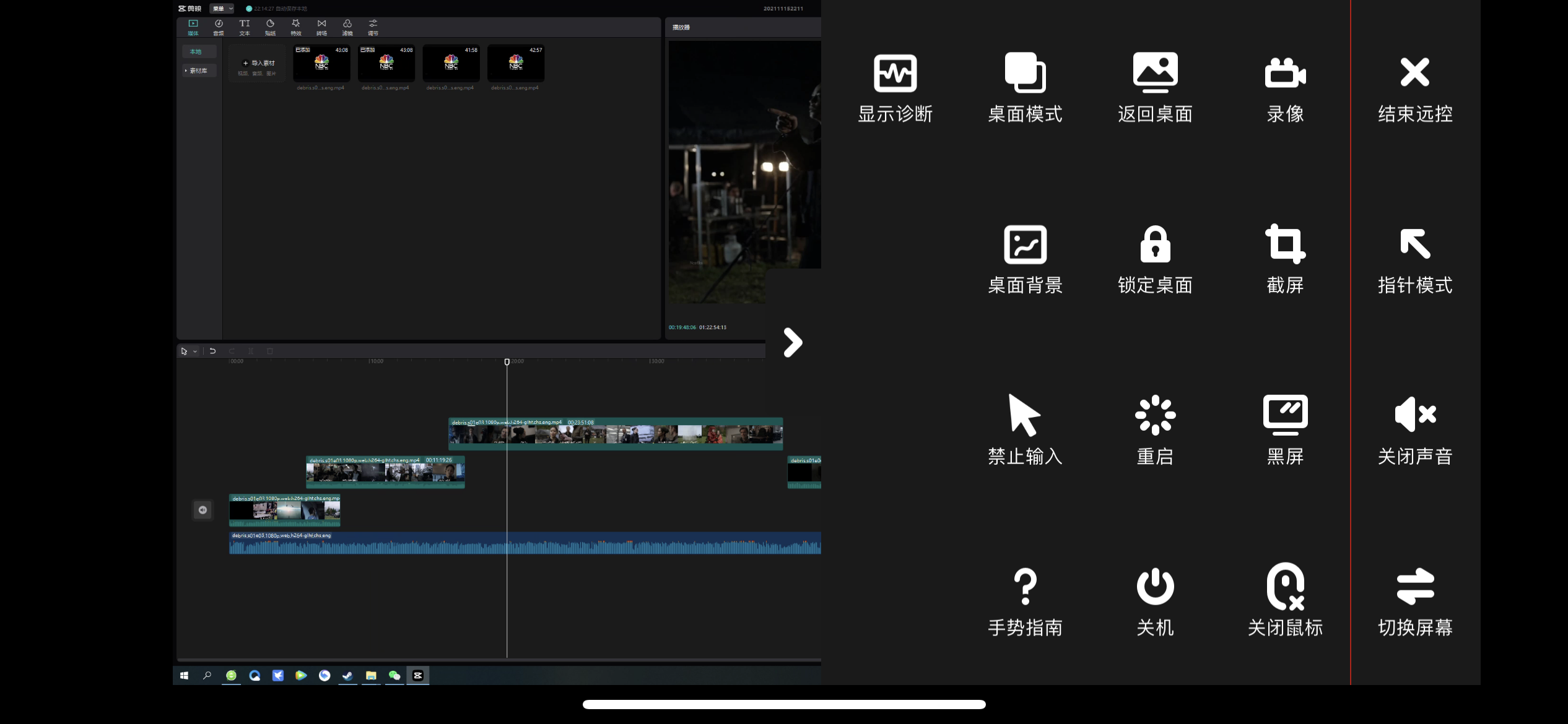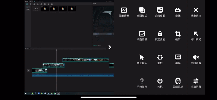 远程控制是向日葵最为核心的功能了。点击绑定的游戏主机,再选择“桌面控制”,即可进行远程控制。我试着打开剪映专业版来剪辑视频,声音、画面居然都能毫无阻碍地播放,并在手机上利用触屏进行控制。以下都是手机截屏——