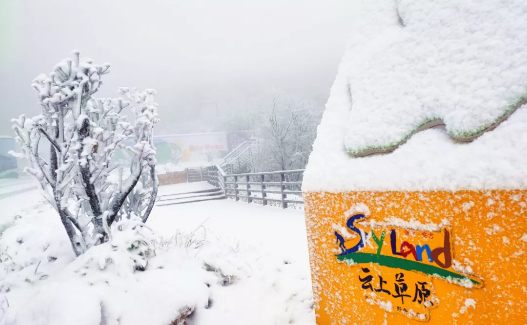 冬日的云上草原、江南天池最低温度可达-10°C,初雪到来,景区银装素裹,来自各地的游客穿着各色冬衣,滑雪、泡汤泉,徜徉在这高山天然滑雪地。