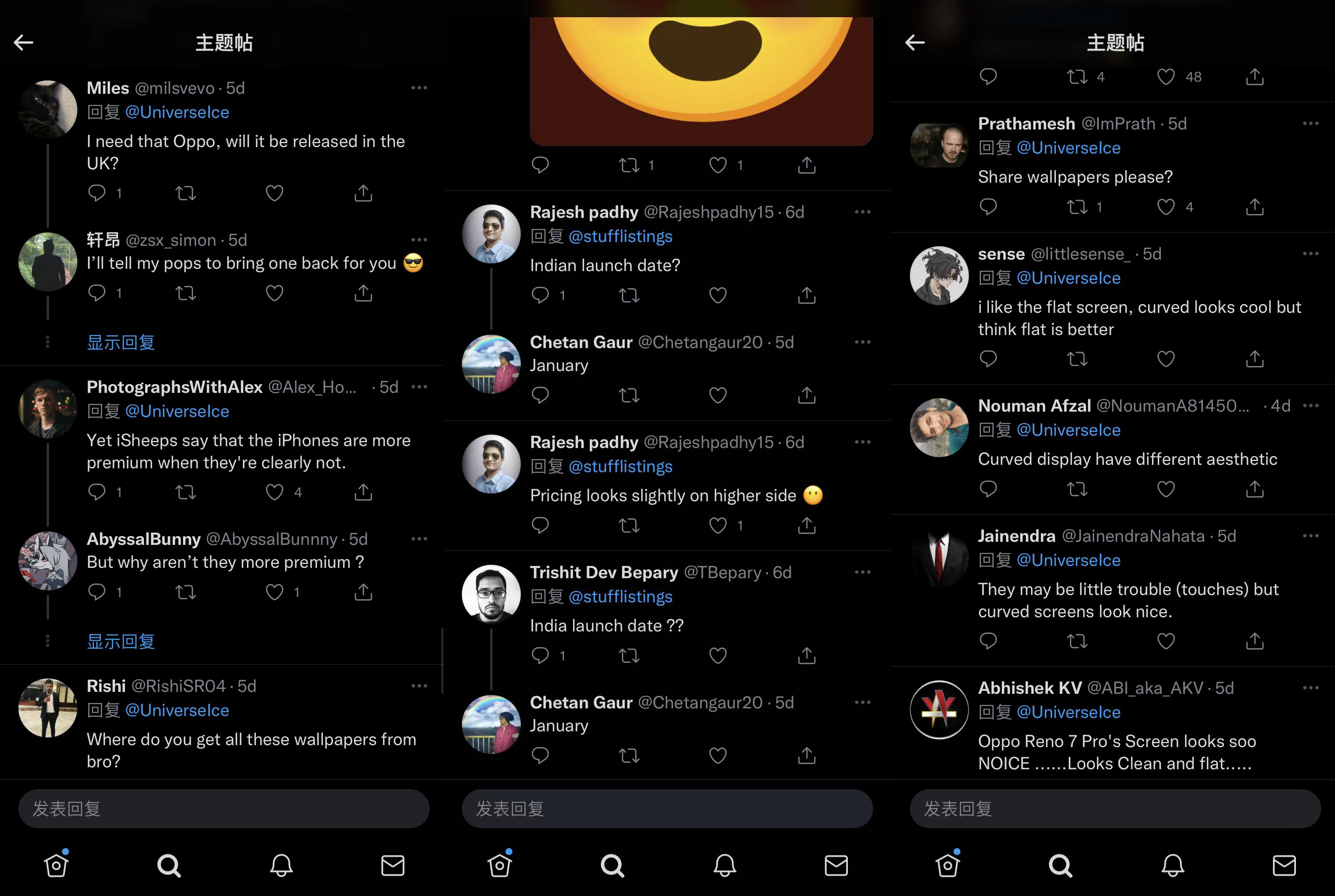 不只是海外媒体爆赞OPPO Reno7系列,它同时也备受海外广大网友的期待。许多海外网友都表示OPPO Reno7系列很外观漂亮,看起来就很高级、正面的极窄边框的直屏显美学特性等等好评;更是有英国网友表示希望OPPO Reno7系列能在英国发布,印度的网友还想知道OPPO Reno7系列在印度的发布时间,看来海外网友和我们一样期待这款“高颜值实力派”的手机。