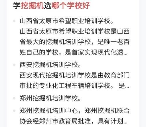 前面的这些学校虽然有实力,但是不太凸显,所以很多人对这些学校都不太了解,对于挖掘机的培训也不太了解。