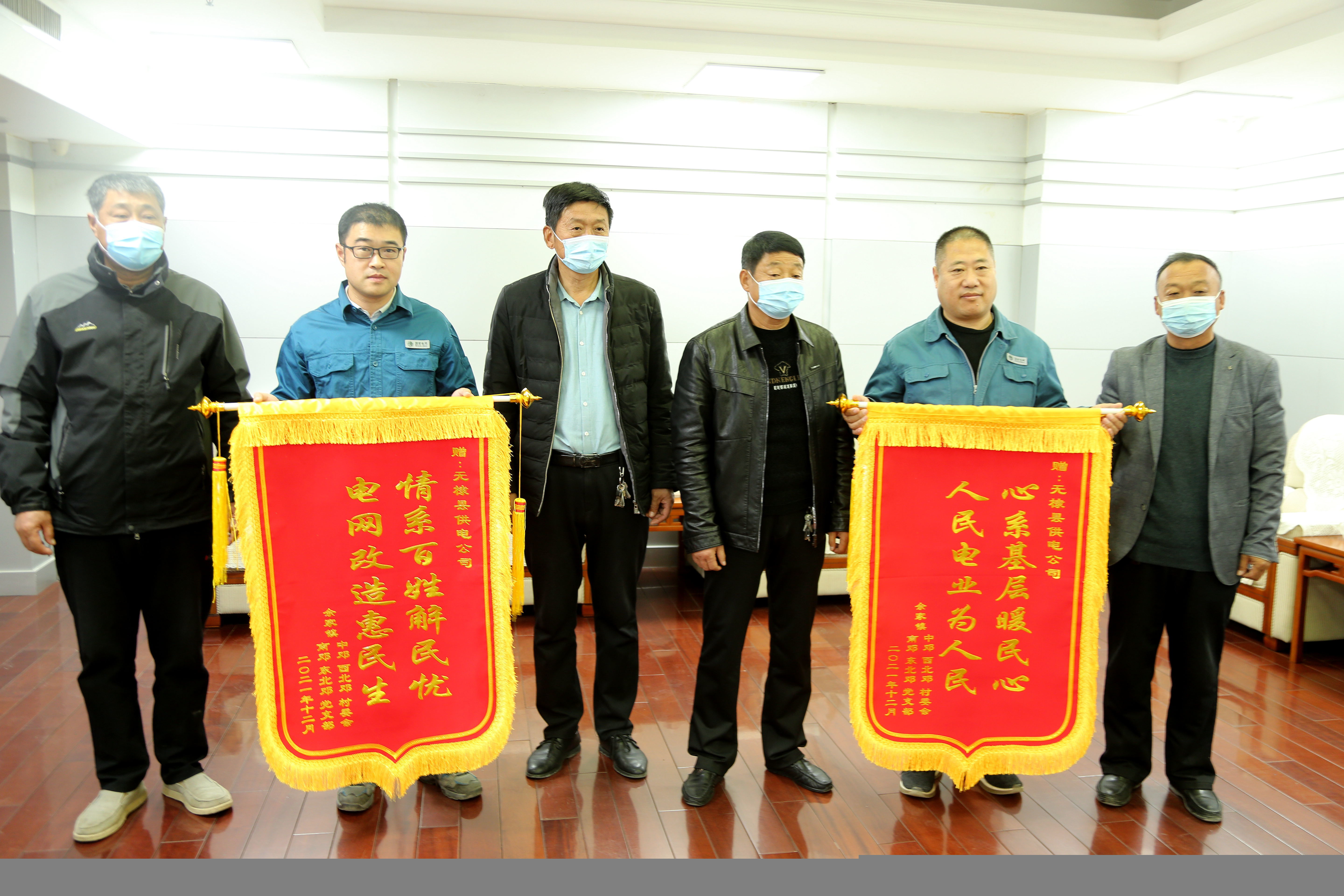 12月2日,无棣县佘家镇南邓村、中邓村、东北邓村、西北邓村四个党支部村委会代表2000名群众联名到无棣县供电公司送来锦旗和感谢信,表达电网改造后人民群众安全高效用电感激之情。