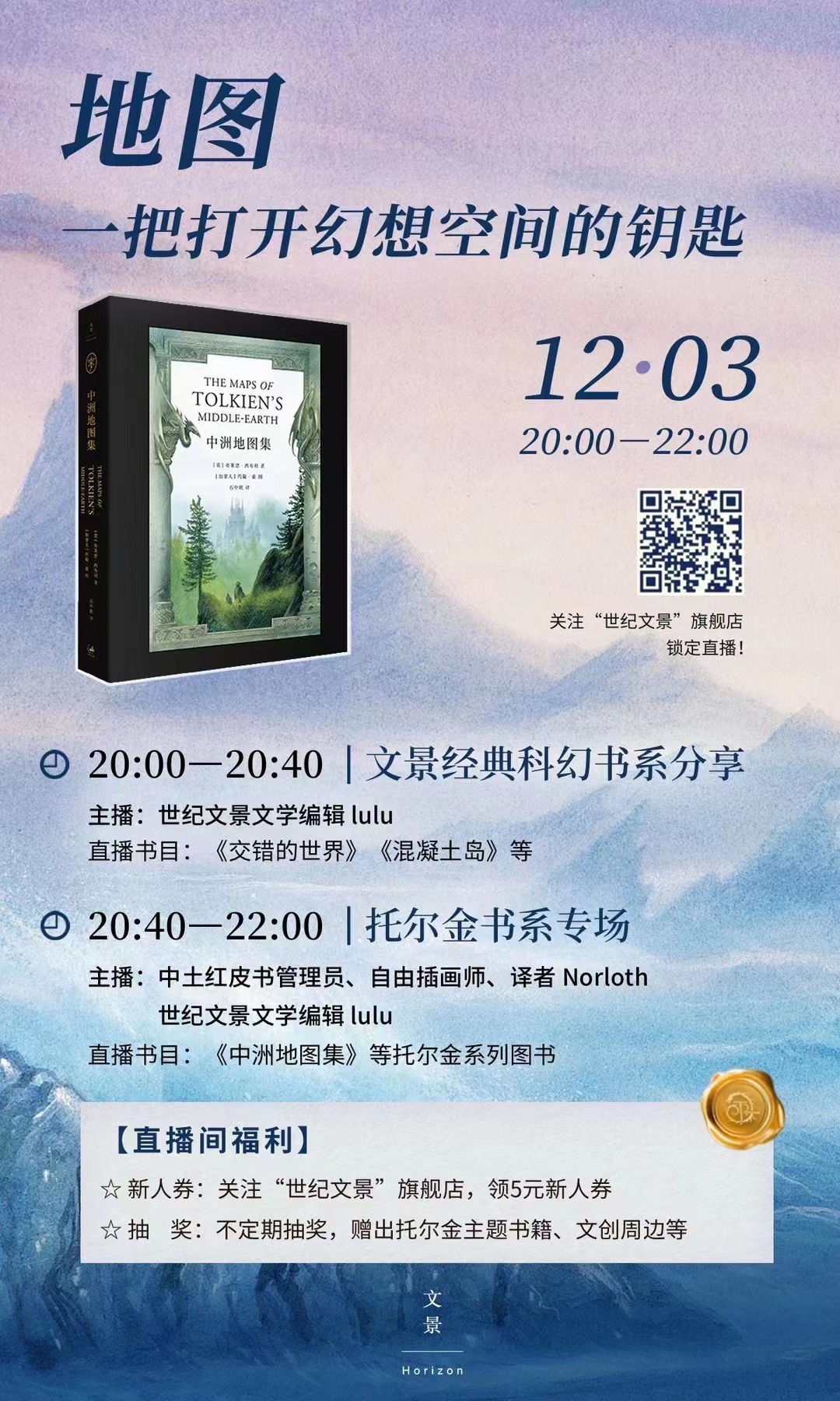 《指环王》《霍比特人》系列电影概念设计师约翰·豪绘制的《中洲地图集》,是一本阅读托尔金必不可少的收藏级图文工具书。12月3日晚,我们邀请了中土红皮书管理员、自由插画师、译者Norloth做客世纪文景天猫旗舰店直播间,和《中洲地图集》的责编lulu一起,从地图集开始聊一聊托尔金创造的奇幻世界。