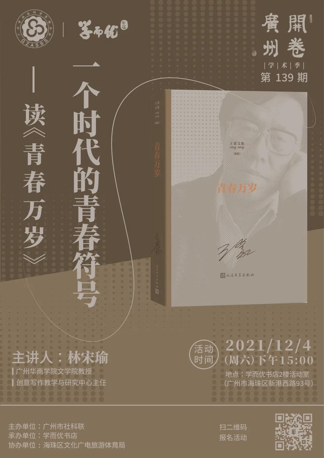 《青春万岁》写于1950年代王蒙19岁时,小说在几代人当中都有着一定影响力,是很多人的青春符号。本周六下午,我们邀请到广州华商学院文学院教授、创意写作教学与研究中心主任林宋瑜,从《青春万岁》出发,从文本的思想价值与时代的关系、艺术特点与五六十年代的创作潮流的关系切入,结合王蒙的创作经历,解读《青春万岁》的主题思想、文学元素以及作为红色经典的文学史意义。