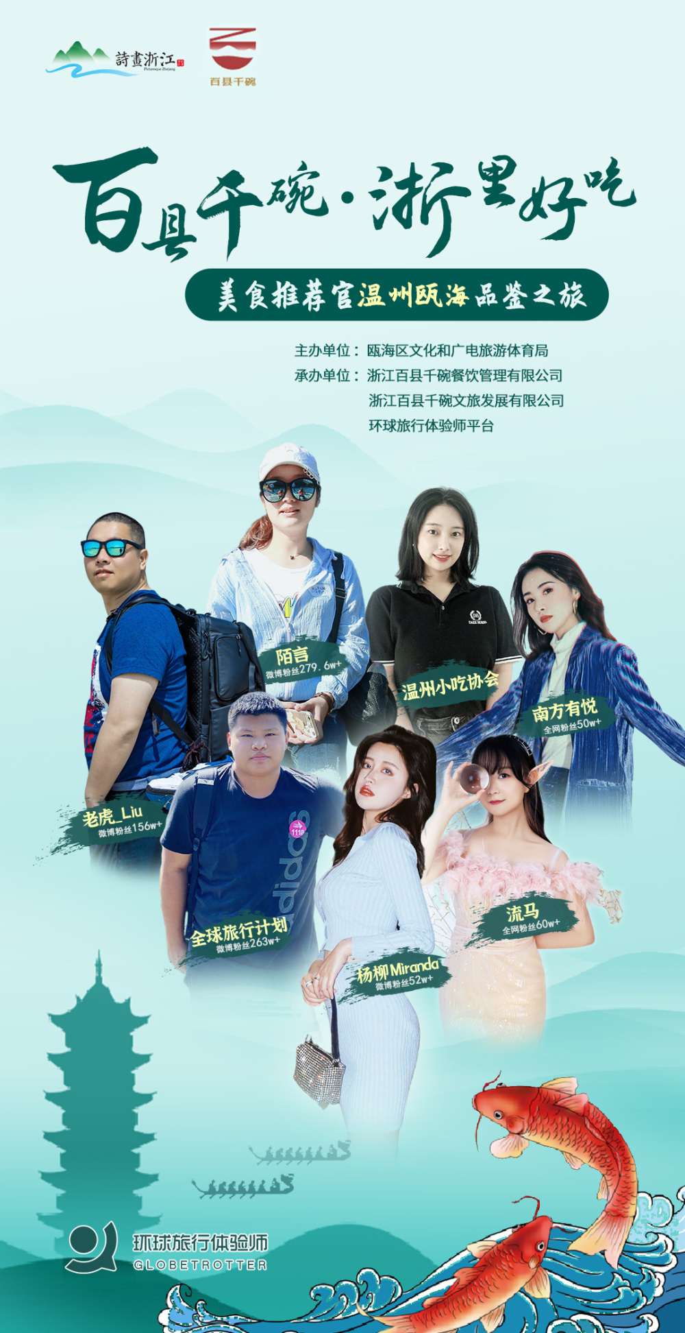 全国各地各个领域的美食大咖齐聚瓯海,他们分别是小红书美食体验官“杨柳Miranda”和“lovemy凤凰”,微博美食博主“陌言”、“流马”和“全球旅行计划”,抖音美食博主“老虎_Liu”和“南方有悦”。