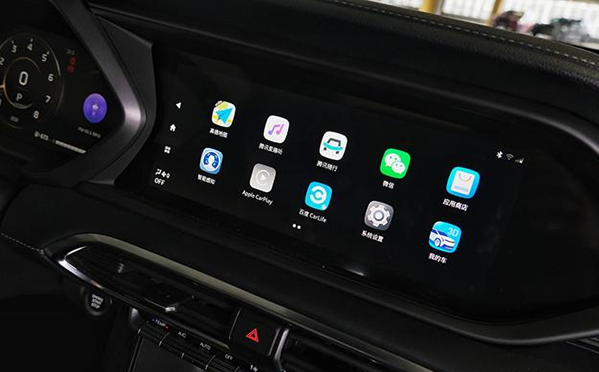 整个车厢内的用料符合同级正常水平,用手摸的话中控台和门板上都是软性材质。全液晶仪表盘+中控屏的双屏设计,符合了当下的流行元素。广汽与腾讯共同研发的GT2.0多媒体系统在大屏内有所体现,功能比较全面,除了导航和蓝牙等基础功能之外,语音控制、远程助手以及车联网等功能也一应俱全,不过这台车机并不支持苹果的CarPlay。