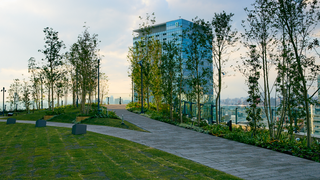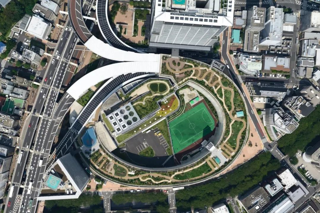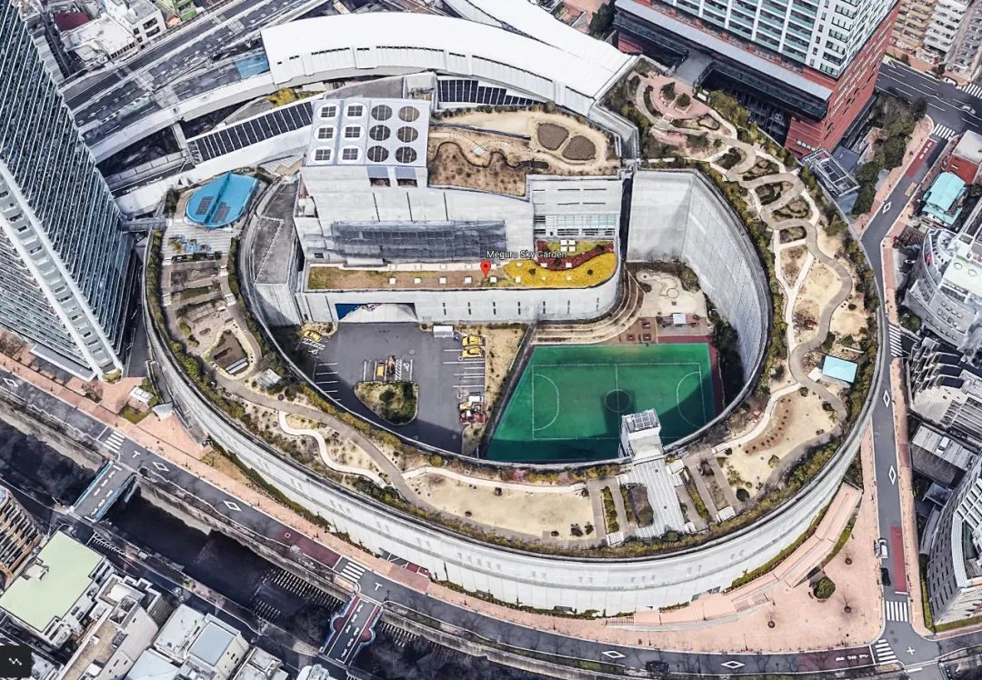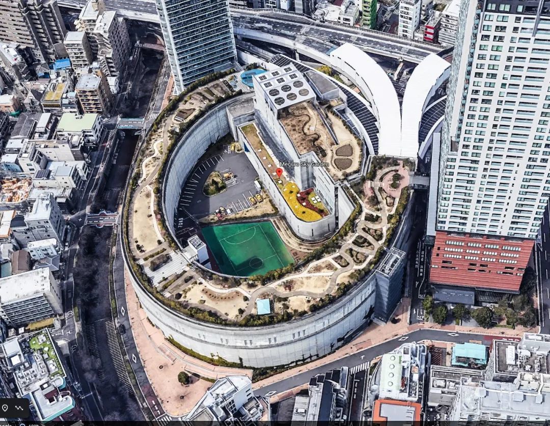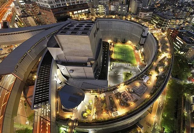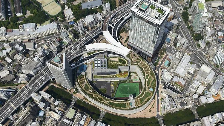 高速公路交汇处的屋顶,一个由10个花园组成的整个公园,天空庭园活用首都高速公路大桥系统交流道的屋顶,是直径400公尺的大型圆形都市绿洲。
