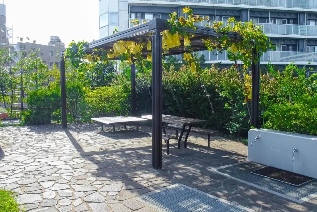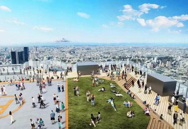 晴天时可以看见富士山美景。可以将吵杂的都市喧嚣踩在脚下,悠闲放松身心。这里为免费入场,且部分区块设有屋顶,无论晴雨皆可尽兴。