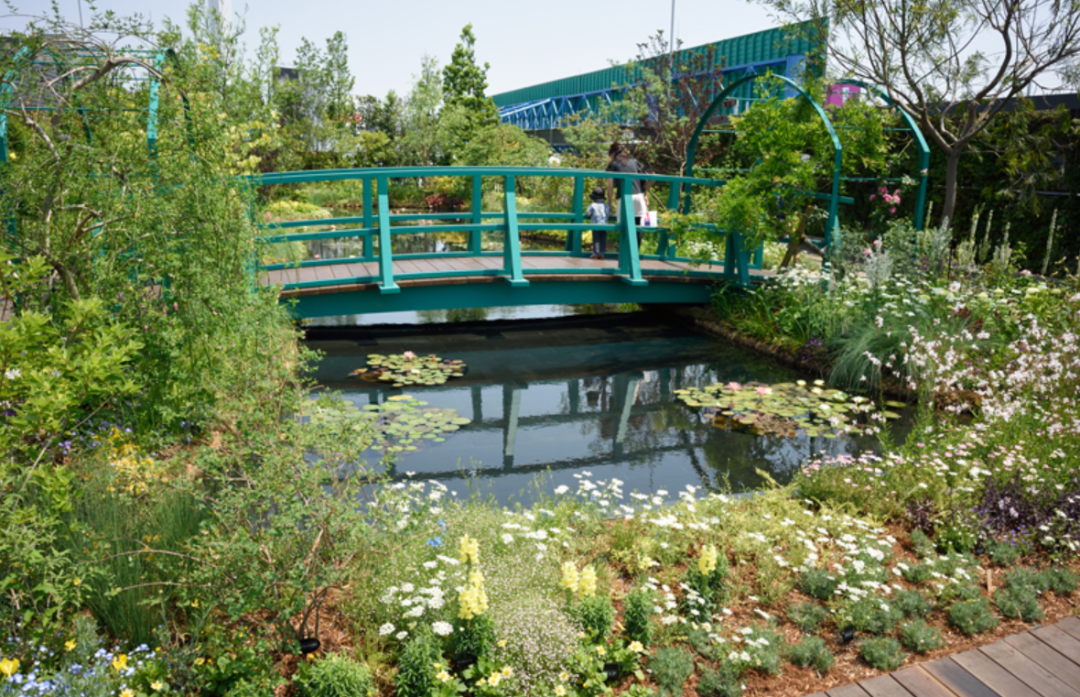 它是一个三层花园,位于三得利音乐厅的屋顶上。上排是一个带有英国国旗“ Union Jack”设计图案的花园,因此从相邻建筑物的屋顶向下看时,它看起来很漂亮。中排有美丽的拱门可以食用和盛装,下排有美丽的玫瑰花。
