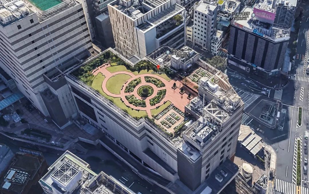 位于惠比寿的车站大楼、atre惠比寿的屋顶。整建好的庭园之中,红砖色的小径和绿意十分相称,往下望去的风景没有大楼阻挡所以可以眺望到远处。适合和小孩游玩,或是坐下吃便当休息的场所。此外,根据时间带不同,可以从阳光整片撒下眼前的光景看到夕阳和夜景,可说是很适合观赏夕阳日落风景的完美罗曼蒂克场所。