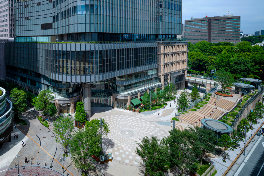 Tokyo Midtown Hibiya 所在的建筑大楼共39层,其中地上35层,地下4层,内部总空间面积约19万平方米六层被命名为 Base Q,设有450座的大型会议中心、休息长廊和一家咖啡厅,这片区域会用作行业人士的商业交流中心。出于其商业定位,这层楼也是高档餐厅的汇聚地,还有一片露天阳台,可以眺望日比谷公园的风光。