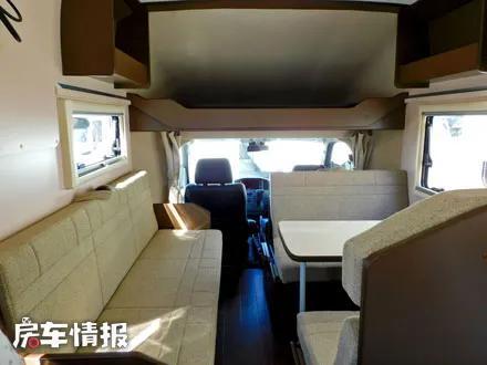 最前方依然是四人对卡座沙发+餐桌设计的会客区域,同时在会客区另一侧则是一长条的沙发,这样在驻车时,车内可以容纳多名人员使用,也不会觉得太过拥挤。