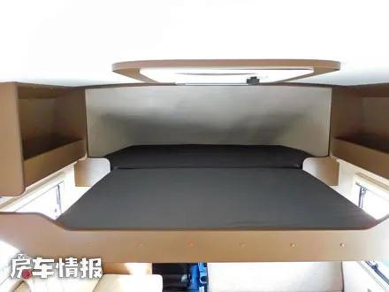 除此之外,在驾驶室顶部的上方的小额头区域内,因为采用了小额头的设计,所以固定的区域无法满足两个人的睡眠需求,但因为外侧带有可抽拉的设计,所以平时也能够住下两个人的。