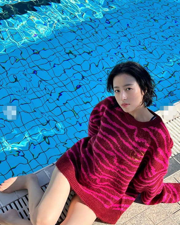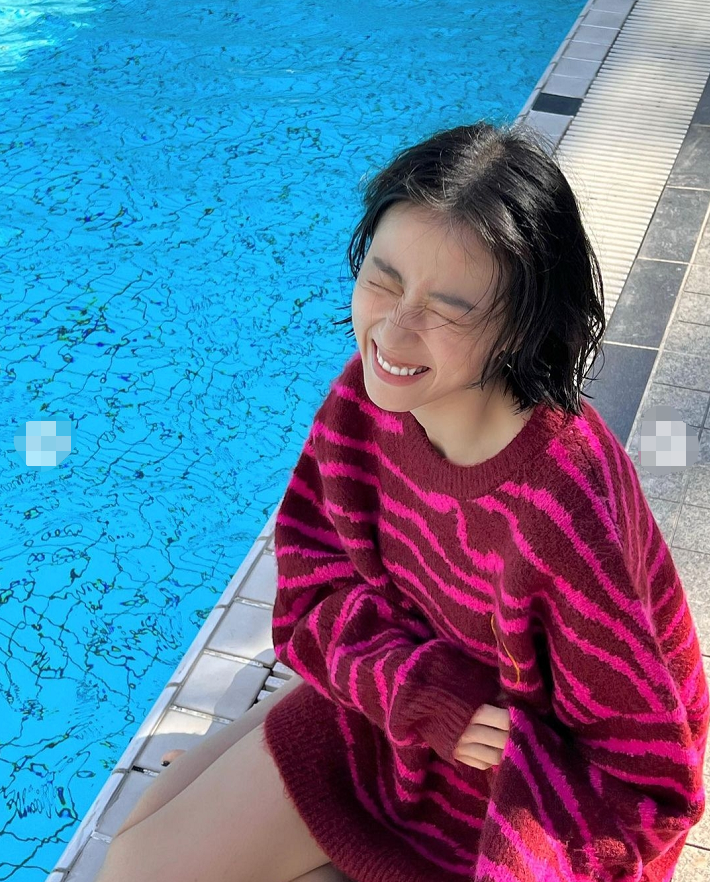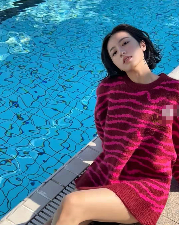 近日,27岁女演员周雨彤罕见晒出自己的写真。照片里的她一改自己的日常休闲风,玩起了小性感。只见她眼神迷离,短发微微湿润,上半身穿着厚厚的红色斑马纹的毛衣,而下半身玩起了“裤子失踪术”,坐在泳池边,露出光洁的大长腿,休闲又性感。