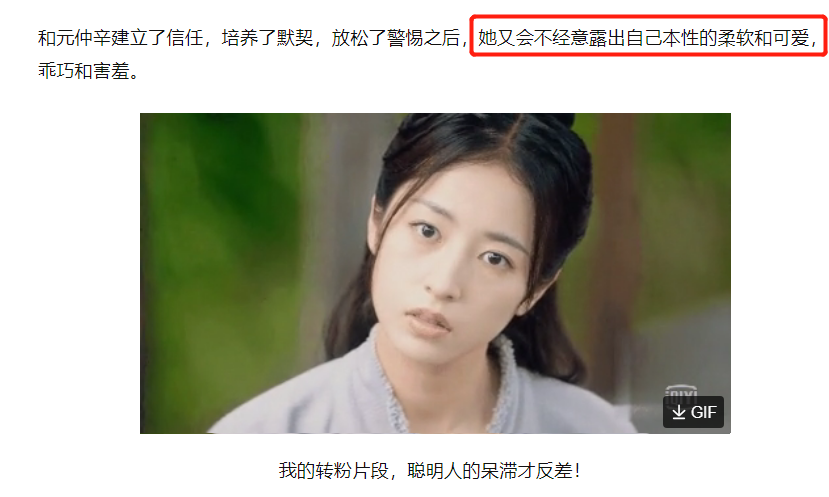 一个观众谈到她对角色的演绎,“赵简”作为一个渴望建功立业的人,身上背负着沉重的任务,在平常的情绪都是内敛而又隐忍的。但是,周雨彤把这个角色可爱的不经意的那一面也很好地表达了出来。因此,“赵简”也成了一个受到观众欢迎的角色。