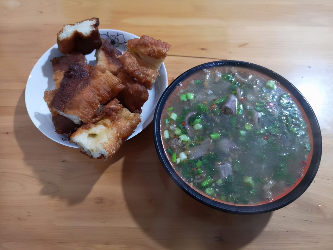 牛杂汤就着油条,汤鲜美,油条劲道