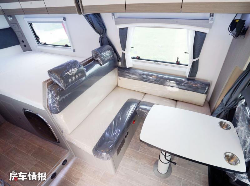 车身尺寸方面,全车的长宽高分别为5995*2450*3150mm,和主流的C型房车相当,也符合蓝牌C本的驾驶规定。