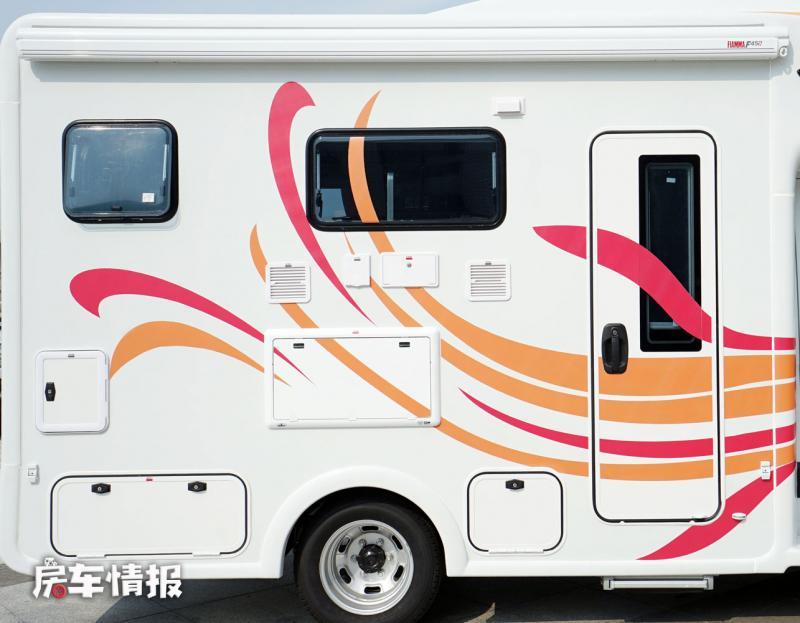 这款房车是基于依维柯欧胜底盘所打造的,整车还是延续了以往白鲸房车经典的造型设计,但是这次全车在车身外观还增加暖橙色的白鲸抽象拉花,看起来就像是畅游在海洋之中,使整辆车更加的灵动。