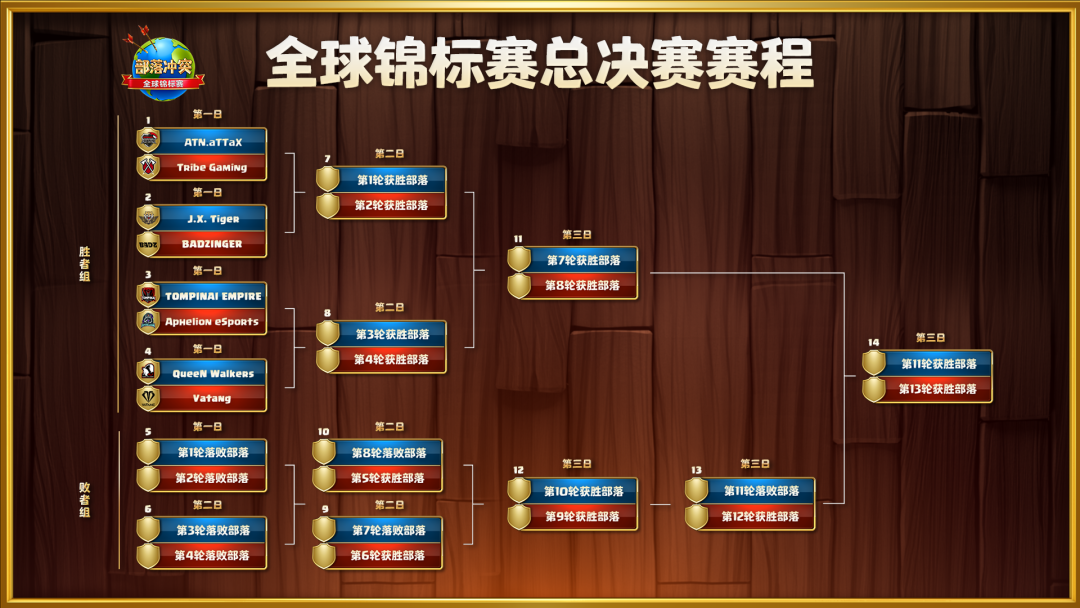 在为期三天的决赛中,八支顶尖队伍将按照赛程图进行比赛。决赛采用双败淘汰制,首次战败的队伍将与其他战败队伍继续比赛,再次战败将面临淘汰。打败所有的竞争者的队伍将问鼎全球总冠军。