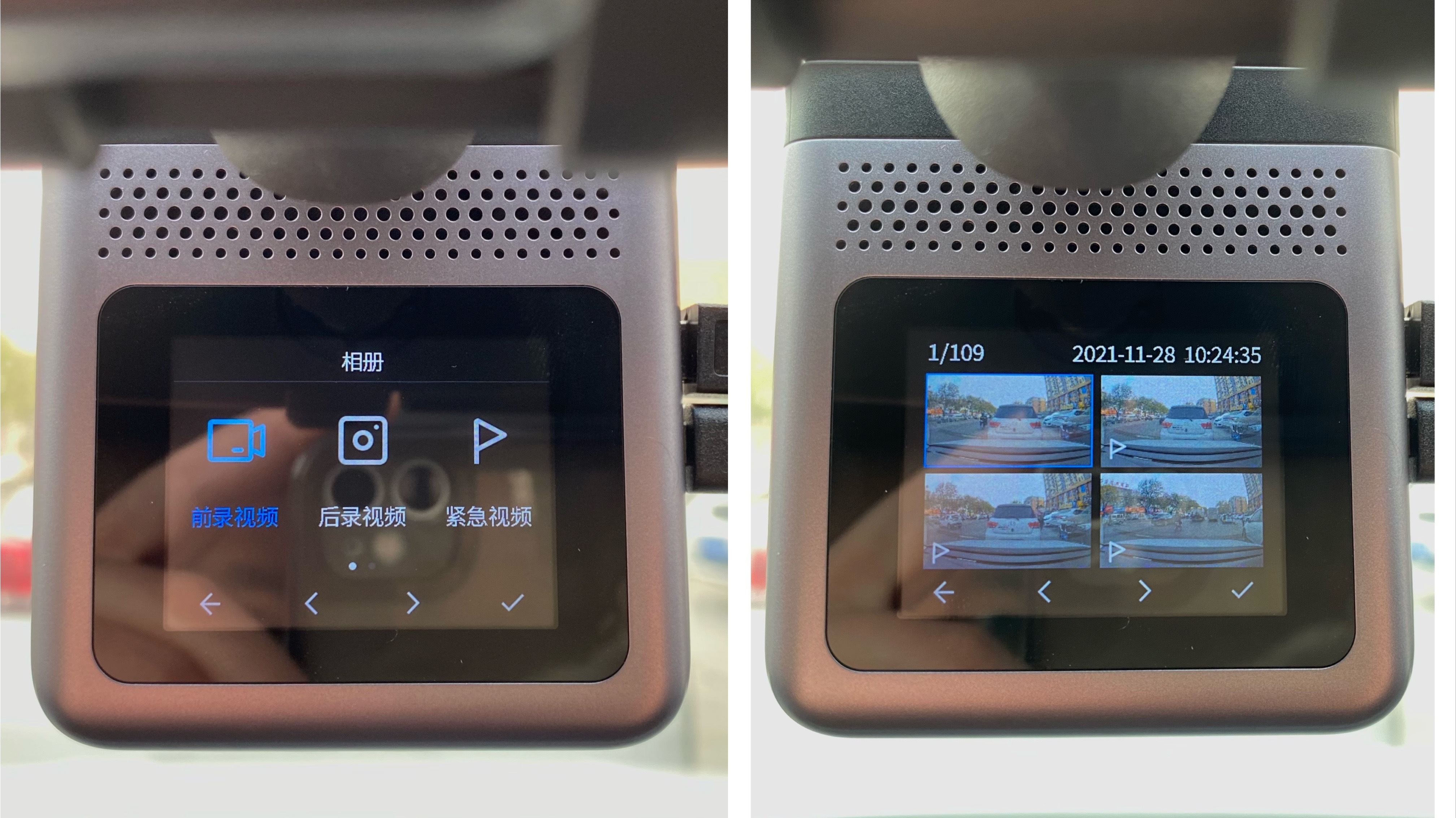 C460机身配备一个电源按键和四个功能按键,通过电源键,可以控制记录仪开机状态下的锁屏和亮屏,通过四个功能按键,可以实现菜单,选择,确认,返回等功能,整体操作逻辑合理,非常容易上手。