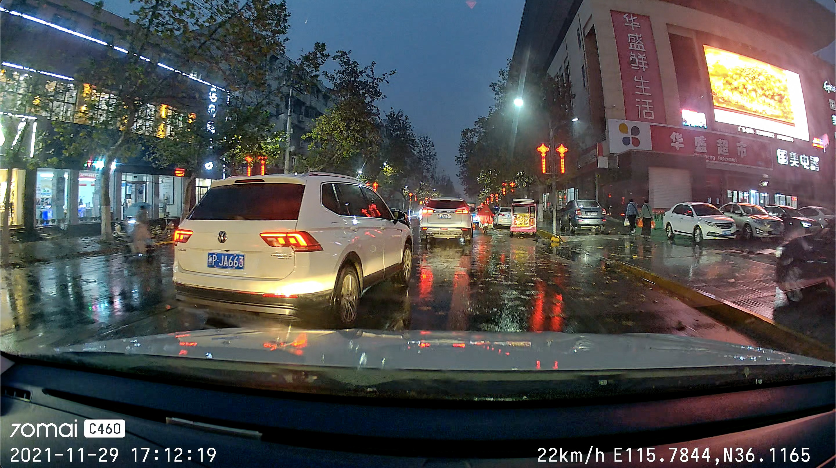 得益于全新的星光级传感器和夜景算法,星曜C460夜晚拍摄画质非常出色,即便是在照明情况不好的道路,依然能够清晰的捕捉画面中的暗部细节,过往行人,车辆车牌号码都清晰可见。