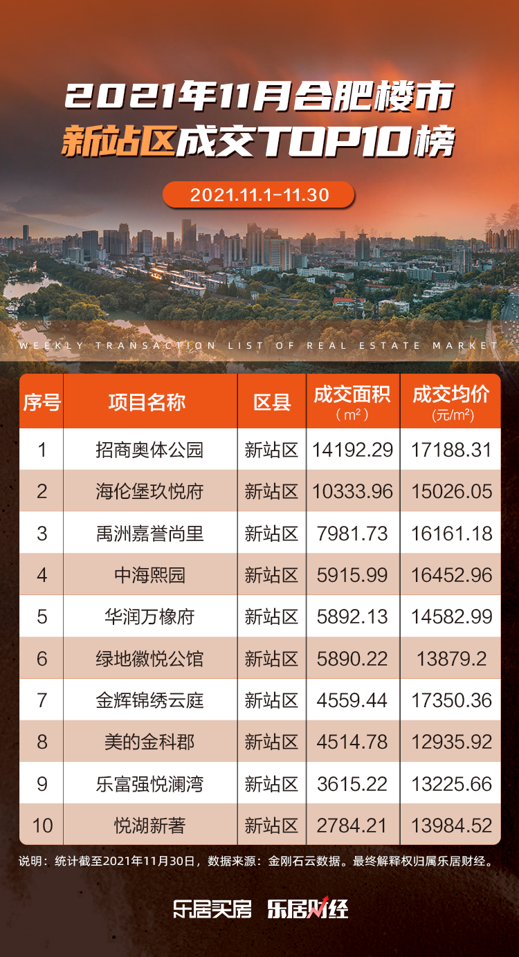 乐居买房讯 雨文 合肥新站区十一月楼市成交榜单出炉!