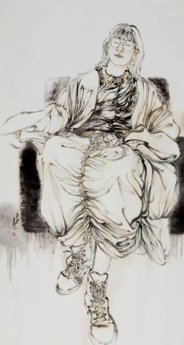 但凡有绘画体验的人都知道,绘画中心性决定笔性,笔性幻化出意趣。为追求神、气、韵的造型意味,亚光不断尝试用线条变化描绘对象的气韵,线条进而加强了独立的形式内涵。他的作品重神弱形,因此,形变得生动自由;他笔下的线条,已然不是面的交界会聚,而是具有感情内容,老沉恬淡的精神,线条的内在表达不再是“物之神”,而是“人之意”,折射出画家的品味与修养。