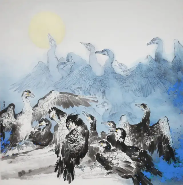 很显然,作为接受中西绘画艺术熏陶和修养的姚新峰来说,自觉把西方绘画中光影、色彩造型意识和技巧融入到中国花鸟画笔墨之中,和传统观念拉开距离也是顺理成章的。更何况,早在二十世纪初,在受到西方美术强烈刺激的背景下,以林风眠为代表的先驱者那里就已经开始探索以西方的写实主义来改造传统国画,并以中西技法融合的审美意识与实践来推动中国现代艺术运动进程。而这种探索实践活动一直延续着,在改革开放至今的这段时间中,以“中西融合”为特征的现实主义绘画创作更是得到蓬勃的开展,蔚然成风,成为新时代美术的一个重要的特点。