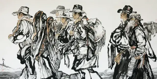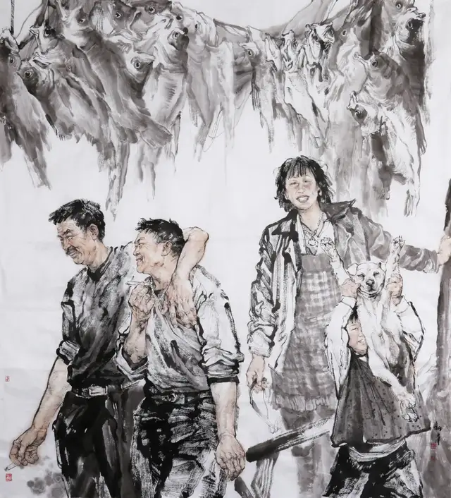 姚新峰是其中砥砺前行的佼佼者,在他的作品中,我们可以看到用笔墨处理线条、块面、光影、透视、色彩时所产生的精准的形象结构与视觉效果是令人愉悦的;毛笔工具在运用中所产生特有的笔性、墨性、色性乃至水性,都能恰到好处地融合在一起,浑然天成,令人击掌称赞。而在构图上,运用现代艺术构成法则,破除陈规,呈现出新时代的艺术审美情趣。