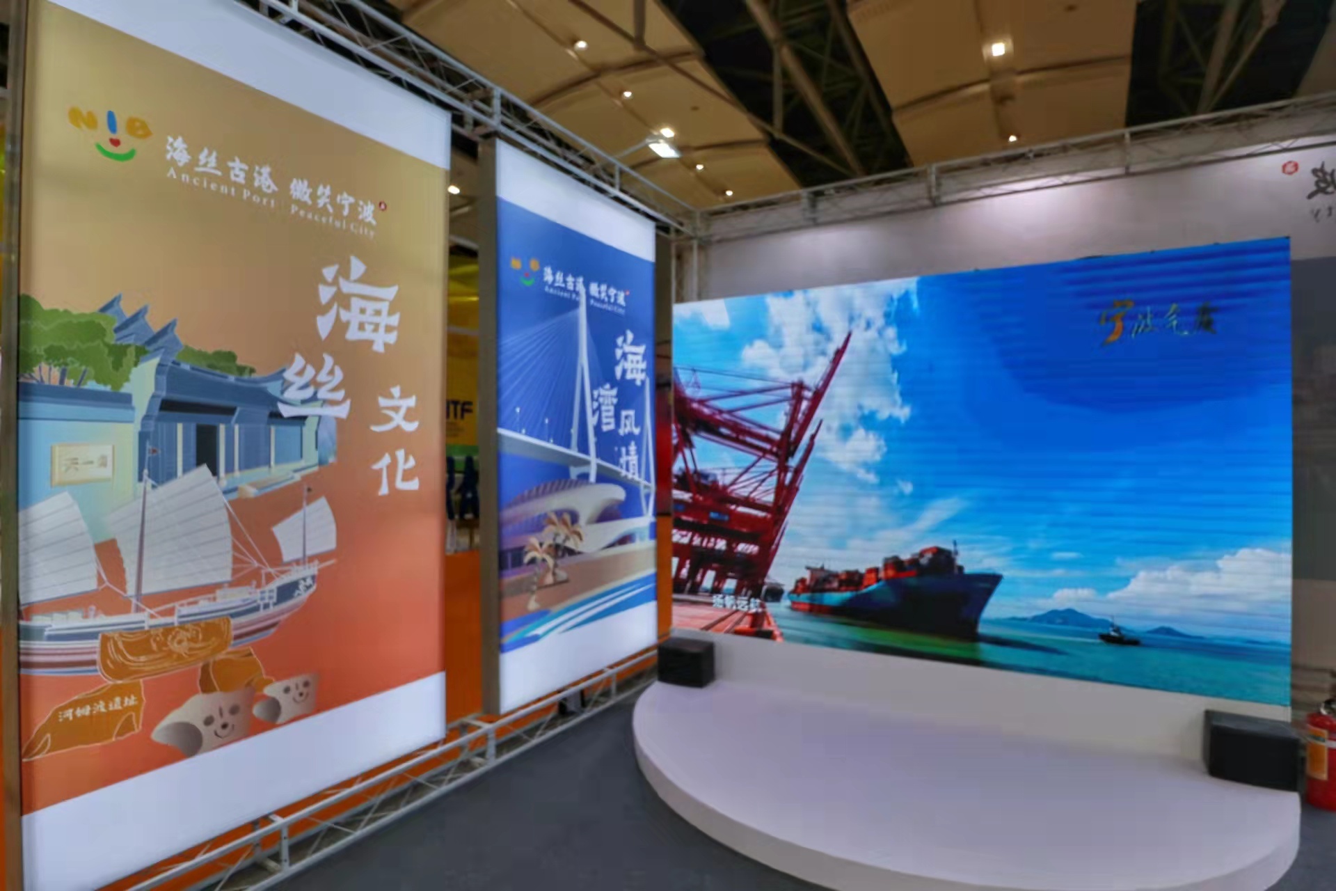 此次参展,宁波展位以三江六岸百里文化长廊为主视觉,汇聚宁波知名景区,将宁波的海丝文化、海湾风情、海天佛国、海鲜美食“四海”文化旅游特色产品淋漓尽致地展现在与会嘉宾和世界朋友们面前,通过营造全新“时尚打卡目的地”,发出“顺着运河来看海”的热情邀约。