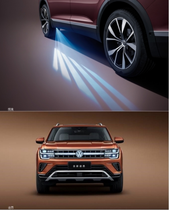 从外观上来看,揽境则采用的是全新一汽-大众型面设计语言,整体造型更刚毅、雅致,尤其是简化的前脸和悬浮式的车顶设计,都为整车增添了一些自信、运动的气息。揽境的前脸设计层次感也很强,前包围采用了大量的镀铬元素点缀,车身侧面看起来十分修长,车尾部分采用了大量的横向线条,上方是贯穿式的尾灯,搭配起来十分协调。中期改款的途昂则采用了全新的前脸设计,头灯整体轮廓变化明显,内部升级为IQ.Light全LED矩阵式大灯,那贯穿式LED灯带和车头中央的扁平化大众LOGO同样可以亮起,颇有新能源车的感觉。不过其实途昂的灯光并没揽境的高,揽境有8种外饰氛围灯,途昂连车铭牌氛围灯都没有。不过途昂的尾灯还是很好看的,采用了与前大灯相同的贯穿式设计,中央的LOGO同样是可以点亮的,加上流水转向灯以及贯通式镀铬横条等设计,质感有着明显提升。可惜途昂提供的是4色可选,而揽境提供的是8色可选,前者很难满足不同用户的不同需求。车身轴距方面,揽境由全新的MQB EVO平台打造,长宽高为5152mm、2002mm、1795mm,途昂的尺寸为5052*1989*1773mm,轴距和揽境一样是2980mm,主打2+3+2的7座设计,可选6座。