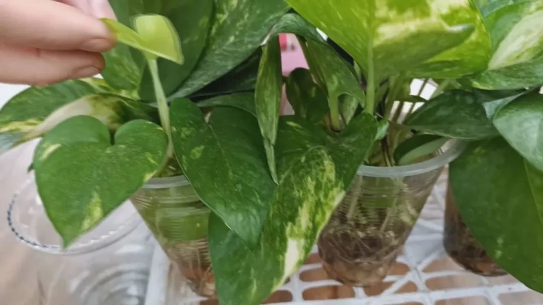 水培时,黄金葛的叶子接受较多散射光,还能促进它长出新的叶子,茎插繁殖的过程中,只要顶部叶子长得足够茂盛,有较多光照,它可以正常的进行光合作用,底部就不容易长绿藻,根系也会长得特别旺盛。