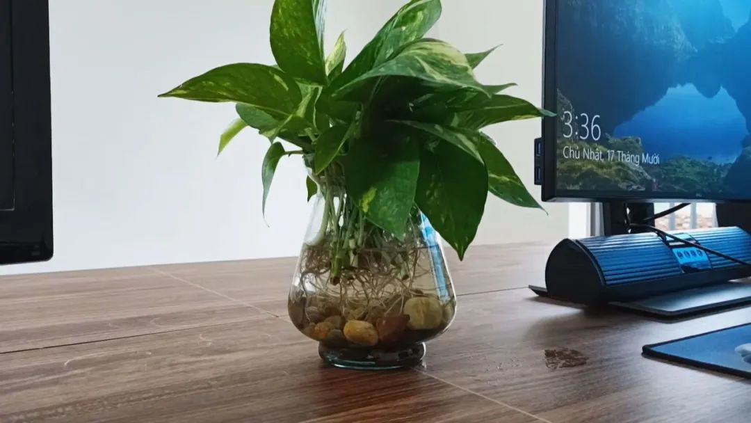 生根后的黄金葛定直接放在玻璃容器里面,也是添加容器2/3的清水,后期就等水变浑浊了及时换水,水位降低后及时添加清水,可以在生长季节每隔3~4周添加一次薄肥,直接在水里滴入3~5滴的营养液即可,这样它们就会长得特别旺盛了。